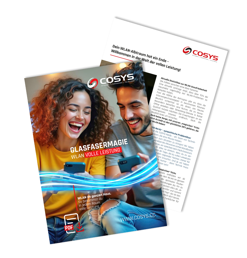 So holst du mehr WLAN-Leistung in jedem Raum – mit Tipps unserer COSYS Netztechniker aus der Region. Sofort kostenlos downloaden.